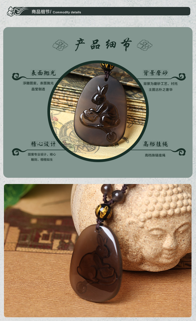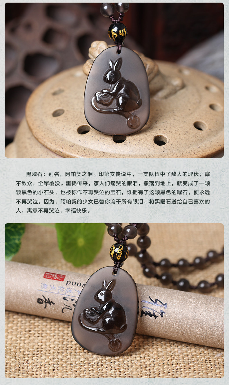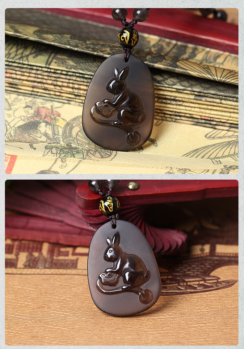 开光玉兔抱瓶属狗本命年开光吉祥物吊坠彩虹眼黑曜石