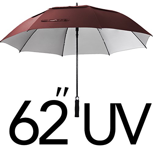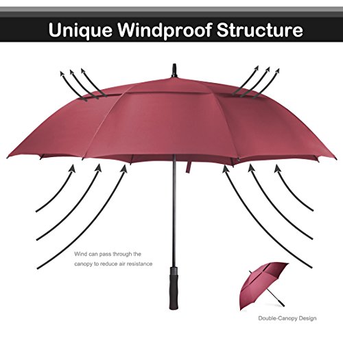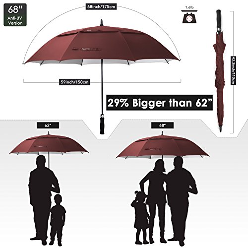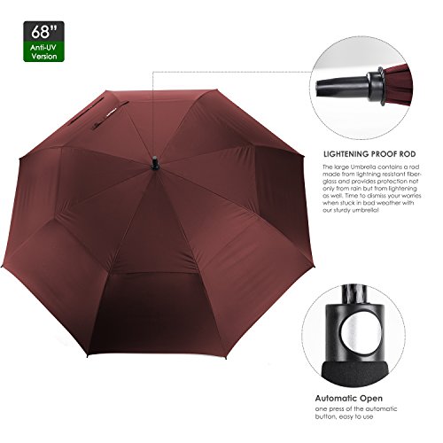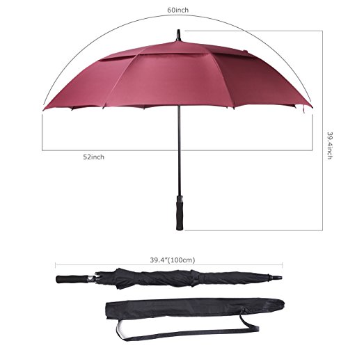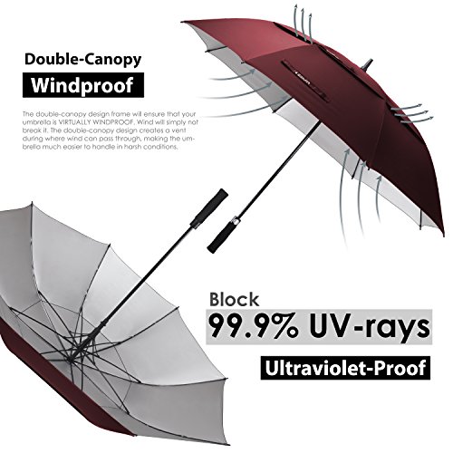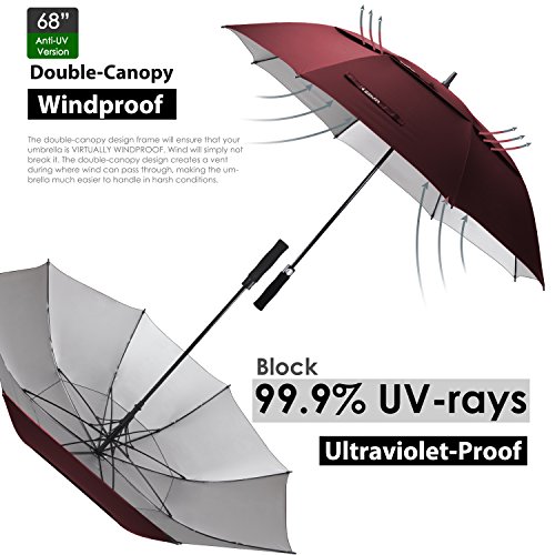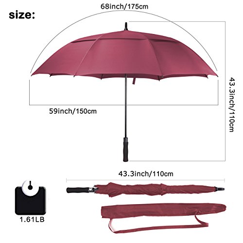 ZEKAR 62/68 Inch Large Windproof Golf Umbrella, Double-Canopy and Auto Open, Include UV Protection Version (wine red)
