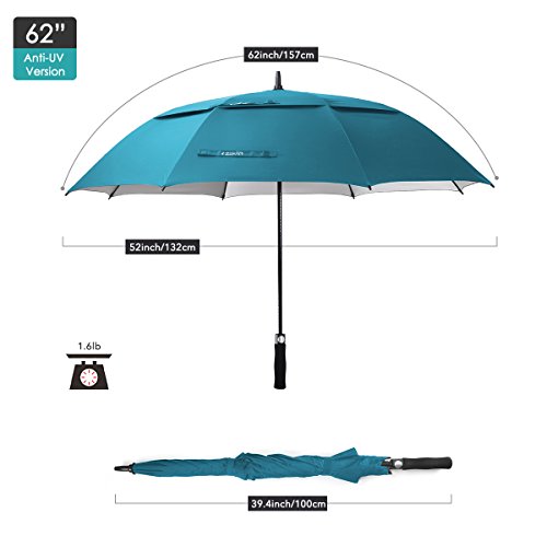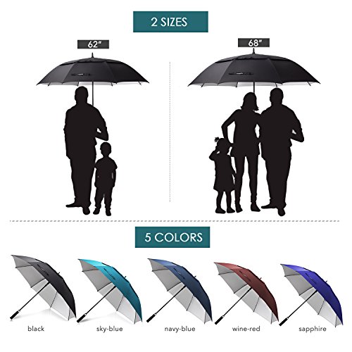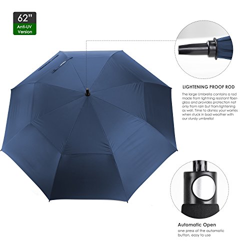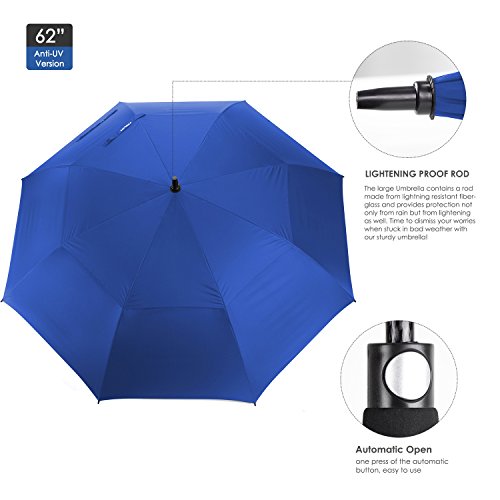 ZEKAR 62 Inch Windproof Large Golf Umbrella, Vented Double Canopy and Automatic Open, Umbrellas for Rain (62"SapphireBlue-antiUV)