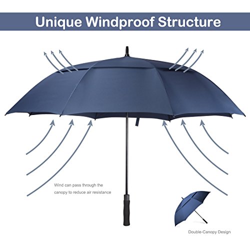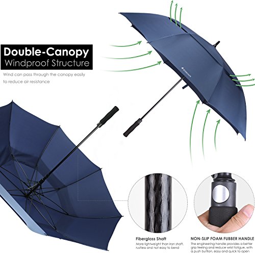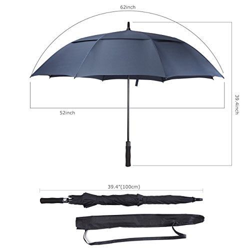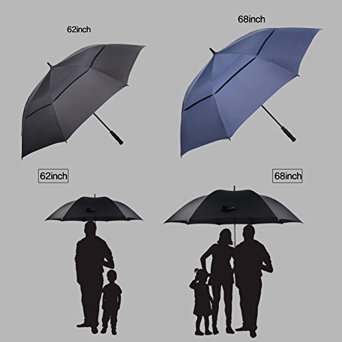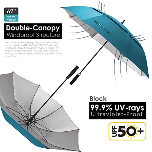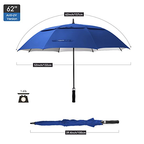ZEKAR 54/62/68 inch Large Windproof Golf Umbrella, Double-Canopy and Auto Open, Include UV Protection Version (62" blue)