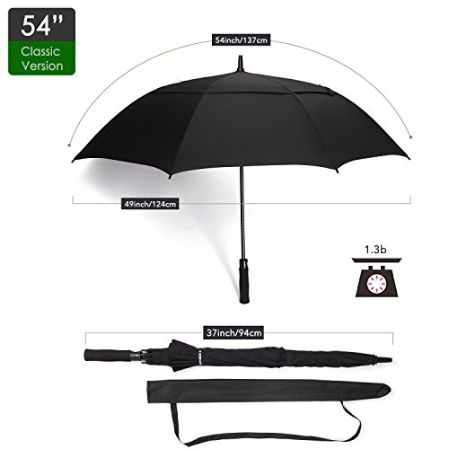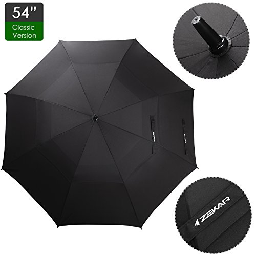 ZEKAR 54 inch Windproof Golf Umbrella, Rain Umbrellas, Best Size for 1 Person (54"Black)