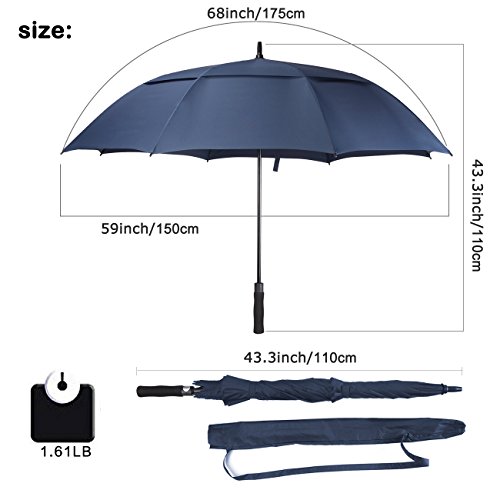 ZEKAR 68 Inch Large Windproof Golf Umbrella Fit 3~4 People, Vented Double Canopy and Auto Open, Black Blue Red Umbrellas (68-blue)