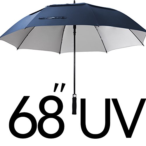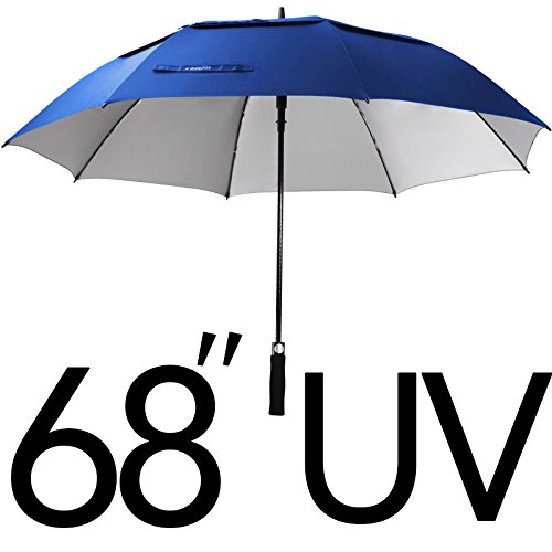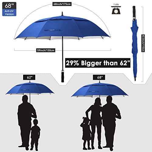 ZEKAR 62 / 68 Inch Windproof Large Golf Umbrella, Vented Double Canopy and Automatic Open, Umbrellas for Rain (68"SapphireBlue-antiUV)