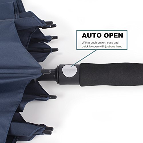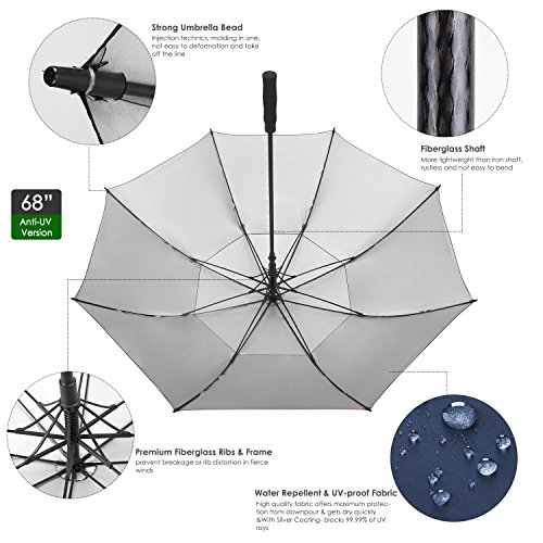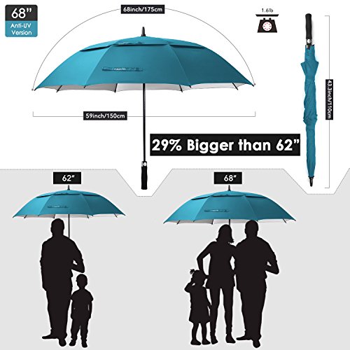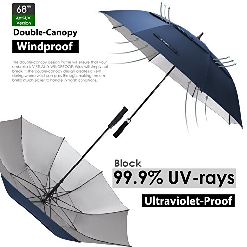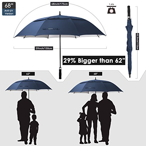 ZEKAR 68 Inch Windproof Large Golf Umbrella, Vented Double Canopy and Automatic Open, Umbrellas for Rain (68"Blue-UV-Protection)