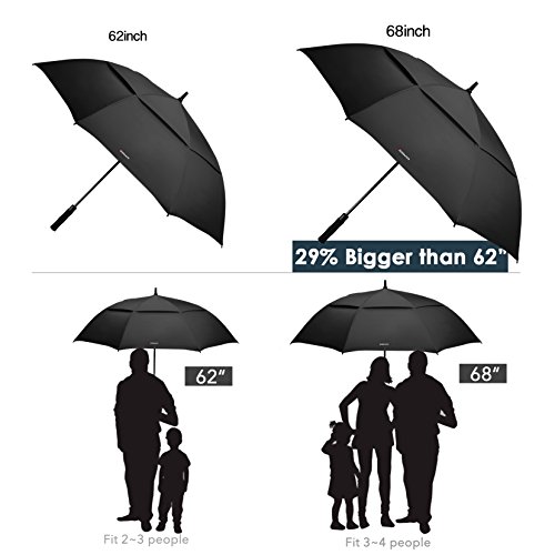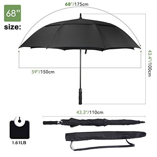 ZEKAR 68 Inch Large Windproof Golf Umbrella Fit 2~3 People, Vented Double Canopy and Auto Open Extra Stick Oversized Beach Umbrella (68-black)