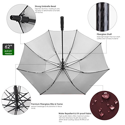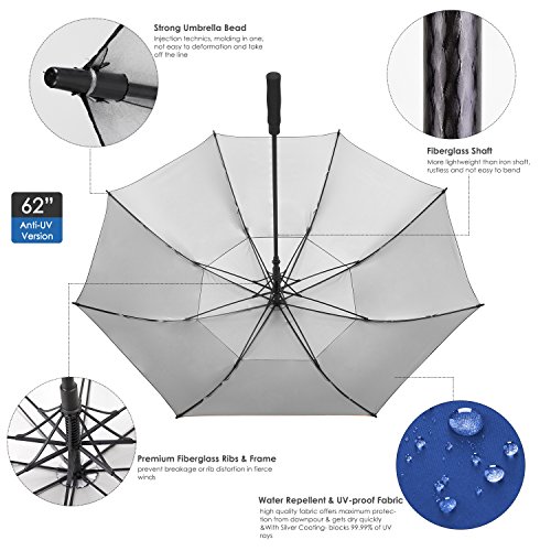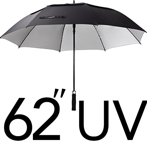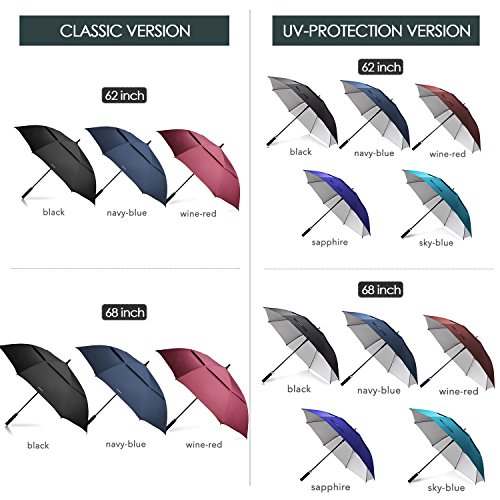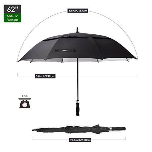 ZEKAR 54/62/68 inch UV Protection Windproof Large Golf Umbrella, Vented Sun Rain Beach Umbrella, Include Classic Version (62"Black-UVprotection)