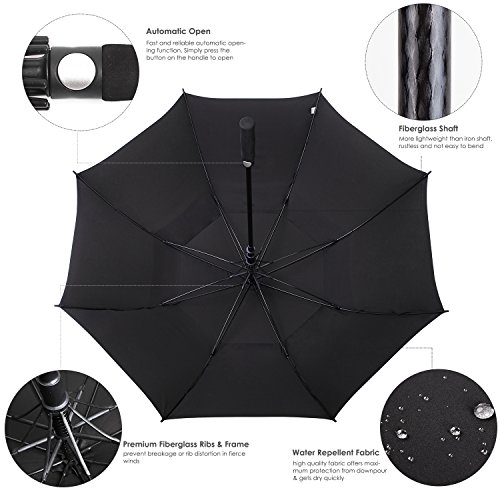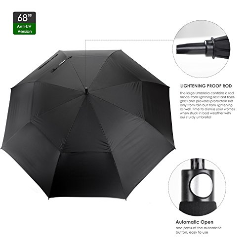ZEKAR 68 Inch Windproof Large Golf Umbrella, Vented Double Canopy and Automatic Open, Umbrellas for Rain (68"Black-UV-protection)
