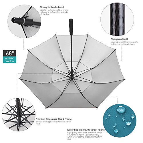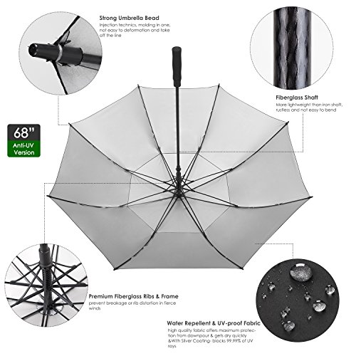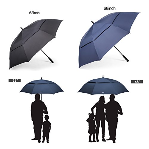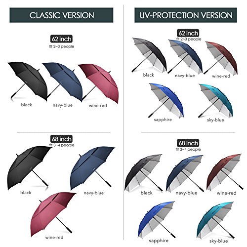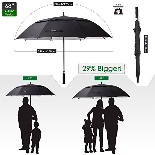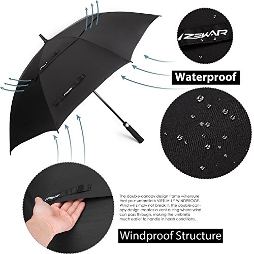 ZEKAR 54/62/68 inch Large Windproof Golf Umbrella fit 2 People, Vented Double Canopy and Auto Open, Include UV Protection Version (black)