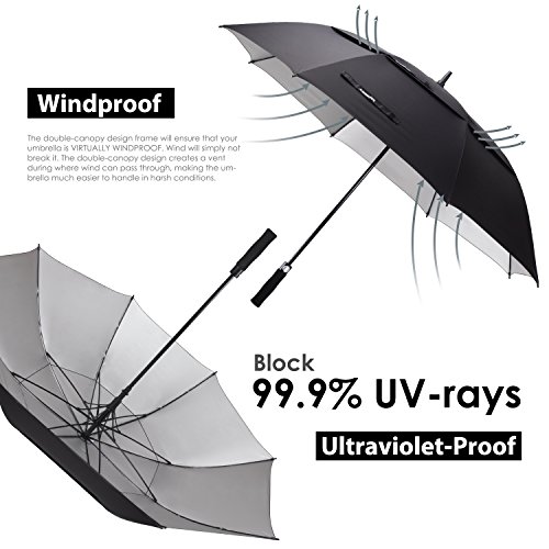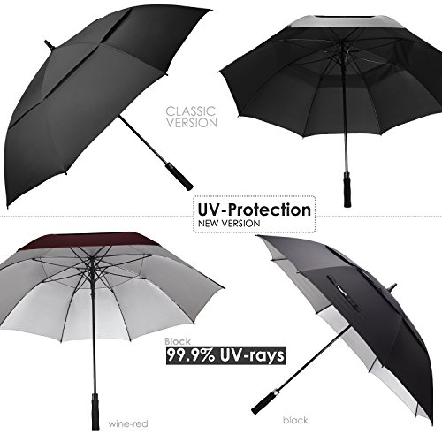 ZEKAR 54 inch Windproof Large Golf Umbrella, Double Canopy Sun and Rain Umbrellas, UV Protection Version (54"black-UVprotection)