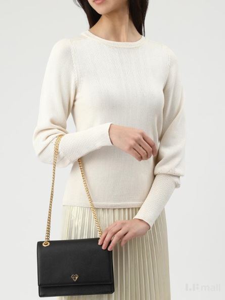 소가죽 소재를 사용하여 견고함을 살렸으며 체인 끈은 한쪽으로 길게 늘어뜨려 크로스 스타일로도 연출할 수 있습니다.