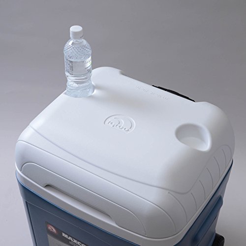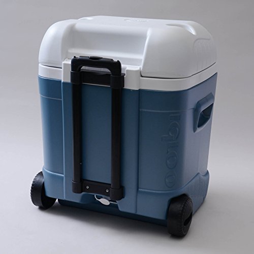 Studio : Igloo ReleaseDate : 2009-10-26 Publisher : Igloo Binding : Sports Product Description The merger of Ice Cube and MaxCold has created the best in performance and ergonomics. The locking telescoping handle paired with durable wheels make hauling your drinks a breeze. A drain plug and in-lid drink holders provide added convenience. Cooler holds ice up to 5 days*.