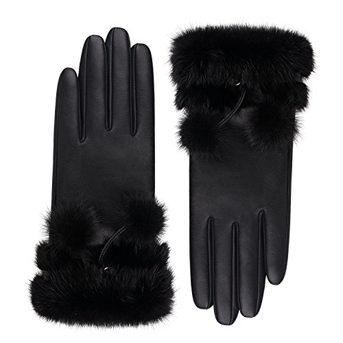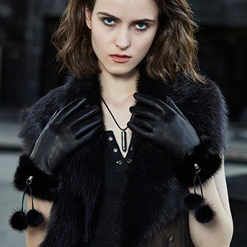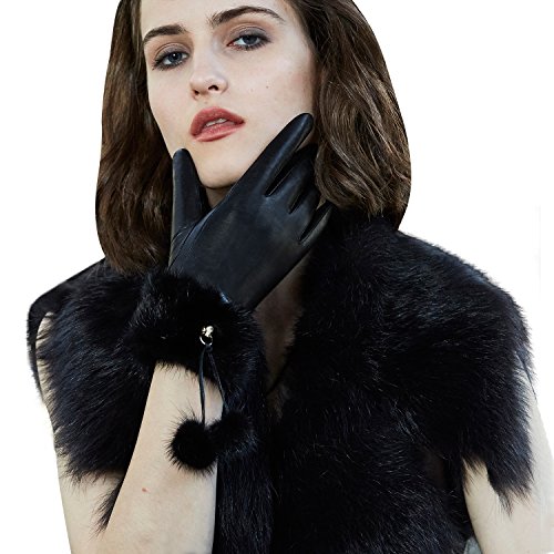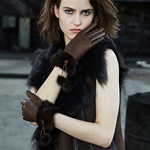 | (Fioretto)/Accessories/Cold Weather Accessories/DIRECT FROM USA/Fioretto 10% OFF Valentine's Day Gifts Winter Genuine Womens Leather Gloves Fox Fur Touchscreen... |