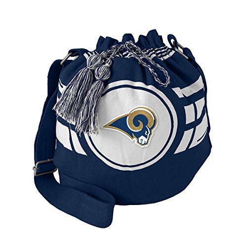 Studio : Little Earth Publisher : Little Earth Binding : Misc. Product Description Make fashion waves with this simple yet bold purse. This natural cotton bag features a bright fashion color and a graphic pattern that draws focus to the team logo applique. Two zippered sections keep cards change and devices neatly stowed. Makes a great pair with the Ripple Zip Wallet.Features. Applique team logo. Elastic closure with tassel accent. Fully lined. Interior slash pocket. League - NFL. Team Name - Los Angeles Rams. Color - Navy 0