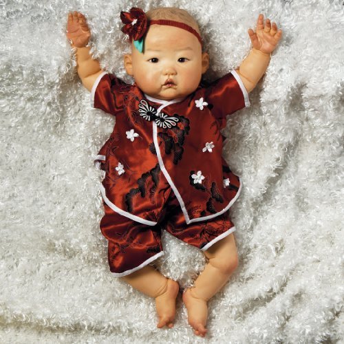A lifelike 20 inch Asian baby doll sculpted by renowned artist Ping Lau