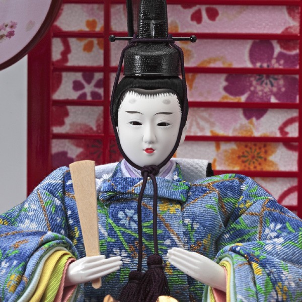 ・台座・屏風等には落ち着いた色目の雛人形セット。