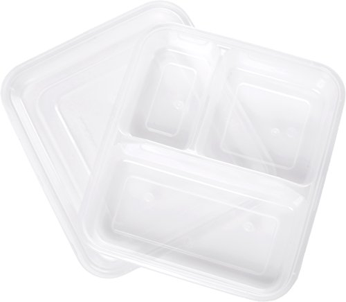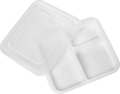 TTG 20-Pack Bento Lunch Boxes with Lids (3 Compartment/ 32 oz) | Microwaveable, Dishwasher & Freezer Safe Meal Prep Container | Reusable Dish Set for Prepping, Portion Control & More (Opaque White)