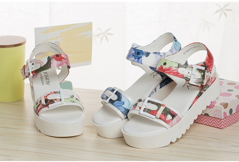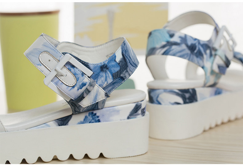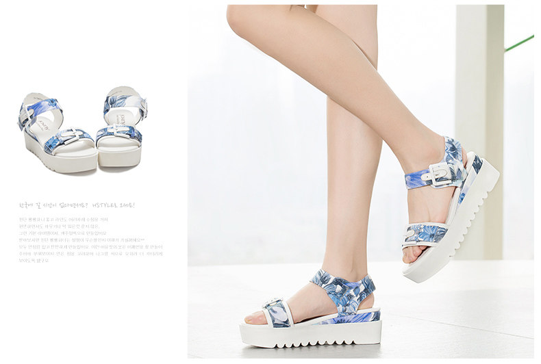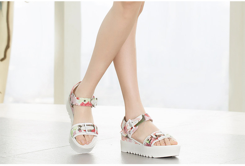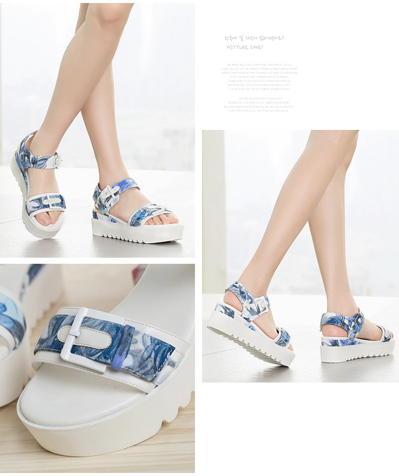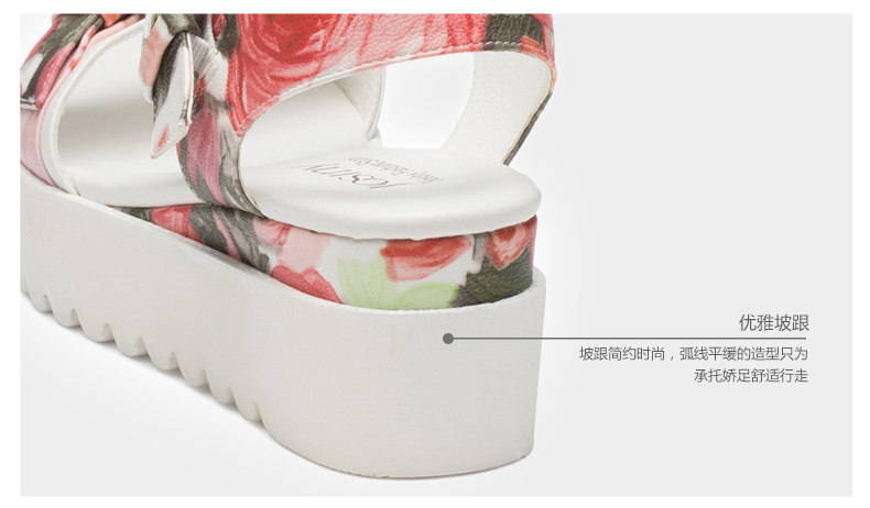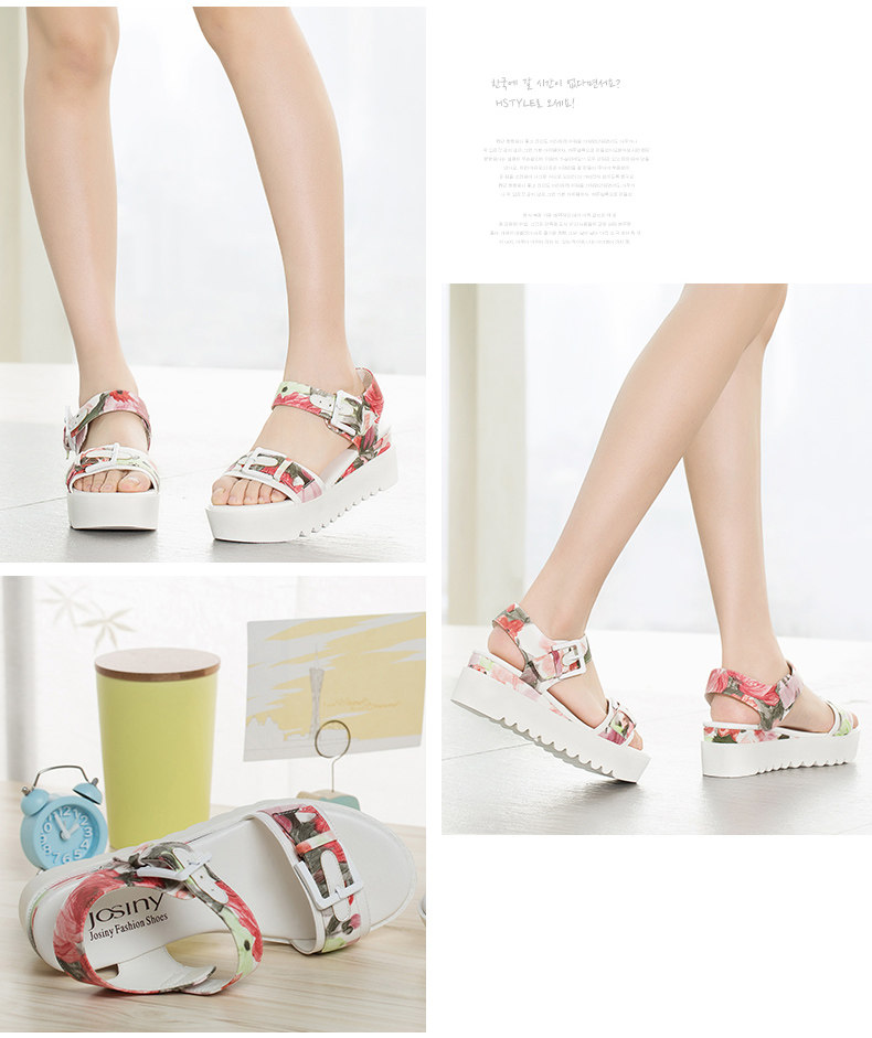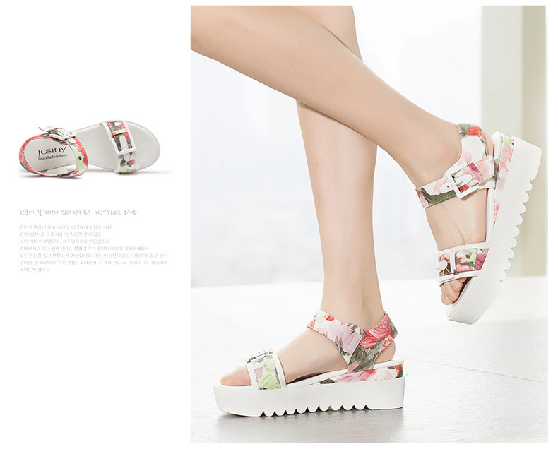 夏季新款女鞋通勤露趾中跟一字式松糕底凉鞋