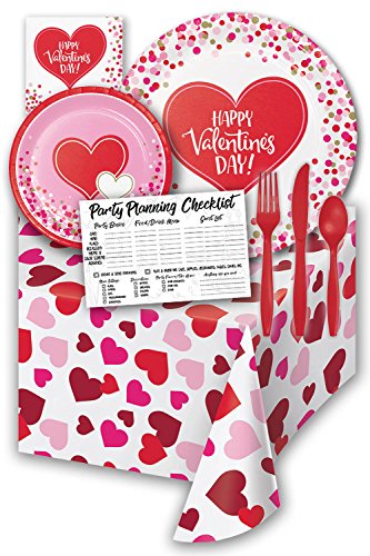 Happy Heart Red and White Valentines Day Party Supply Pack Bundle - Serves 8 Guests