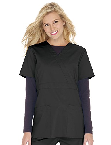 - Y-NECK WRAP STYLE SCRUB TOP: This stylish mock wrap scrub top features a banded empire waist, front and back darts for shaping and two front patch pockets and a pen pocket to store everything you need to get you through the day.