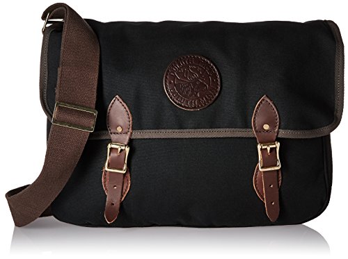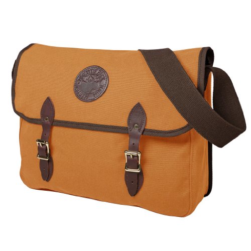 -. Feature : Heavy-duty 18-ounce canvas construction / Adjustable shoulder strap and leather straps with high quality roller buckles secure fold-over flap / Interior full-length divider with pen and calculator pockets / 11H x 16W x 4D / Made in the USA