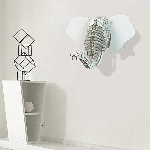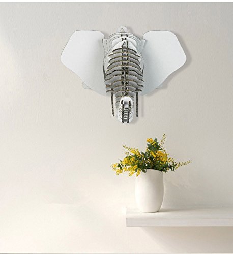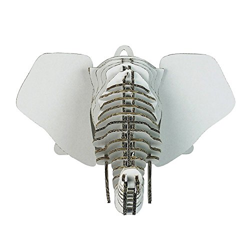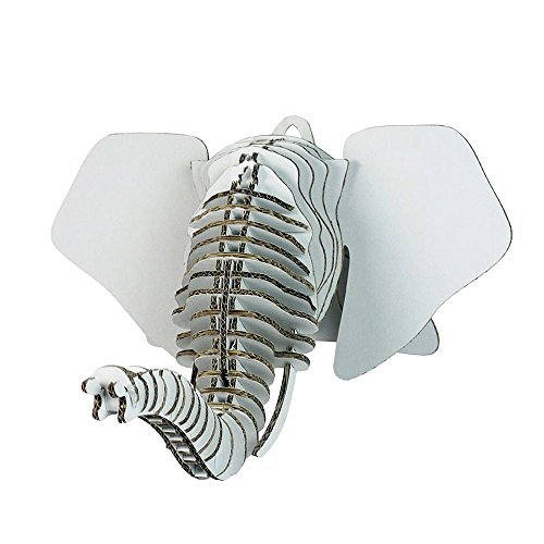 Paper Maker DIY Cardboard Elephant Head Wall Mount Hanging Home Decoration (Small, white)