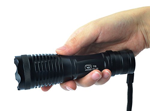 -. Title : Smiling Shark® XB-E6 1000 Lumens Adjustable Focus Zoomable Handheld Flashlight, Super Bright CREE XML-T6 LED Flashlights, Water Resistant Camping Torch for Outdoor Sports, Black