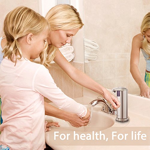 【Touch Free & Reduce Germs】With Japanese intelligent infra-red sensor and Waterproof cover, the upgraded motion sensor will not damp and take in water; Soap will dispense automatically when your hand is placed in front of its responsive infrared sensor. Without any direct touching, it helps you reduce the spread of germs.