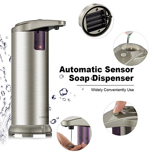 Automatic Soap Dispenser, Ubegood Sensor Soap Dispenser Touchless Stainless Steel Liquid Dispenser IR Infrared Motion Sensor Hand Free Dish Soap for Kitchen Bathroom