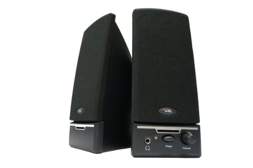 These desk speakers feature space-saving design that is ideal for those who are crunched for space. This 2.0 (two piece) system offers a lot of bang for your buck with its solid audio performance and elegant design. These magnetically shielded computer speakers are equipped with cloth grill covers, a built-in headphone jack for privacy, and finger tip controls to provide the upmost protection and ease of use. You'll find these speakers a great companion for PCs, gaming, movie watching or just listening to music.Feature