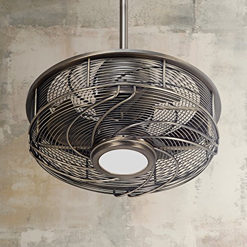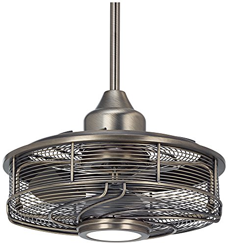 From Casa Vieja comes the Vestige™ ceiling fan with a subtly decorative cage design. This smart fan design comes in an antique bronze finish, and features an integrated LED downlight that offers ambient, diffused lighting through a frosted white glass diffuser. UL listed for damp locations.