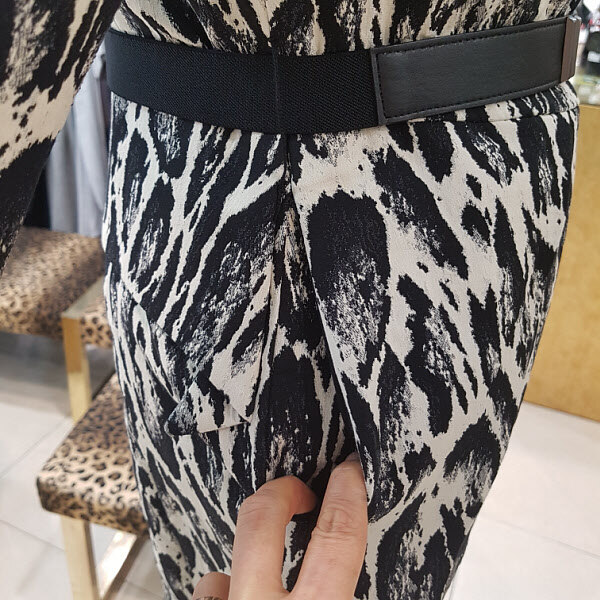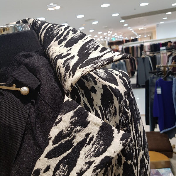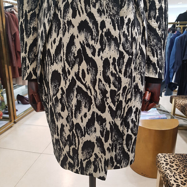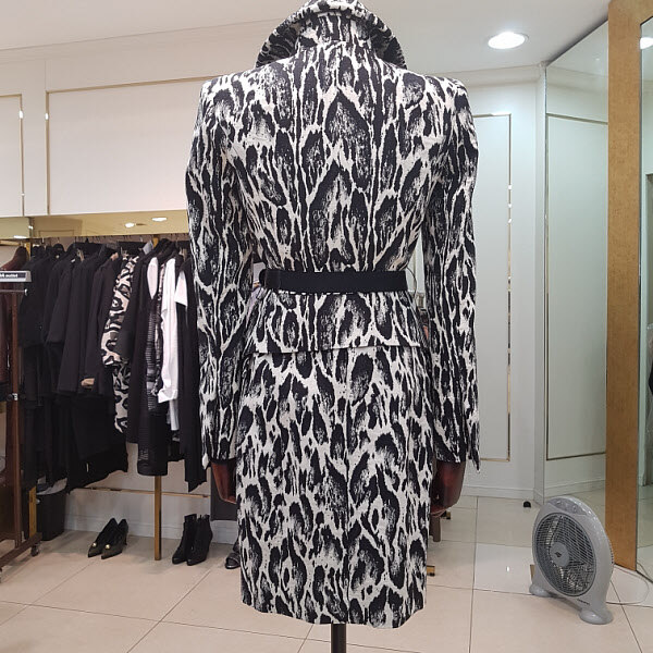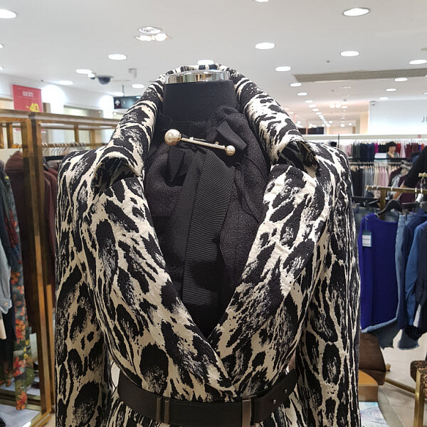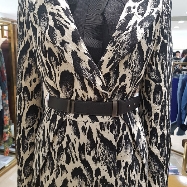 캐쥬얼프린트 문양이 독특하며 카라에 와이어가 들어가있어 분위기연출이 자유로우며 허리라인이 자연스레 들어가 있어서 날씬해보이는 효과가 있습니다.