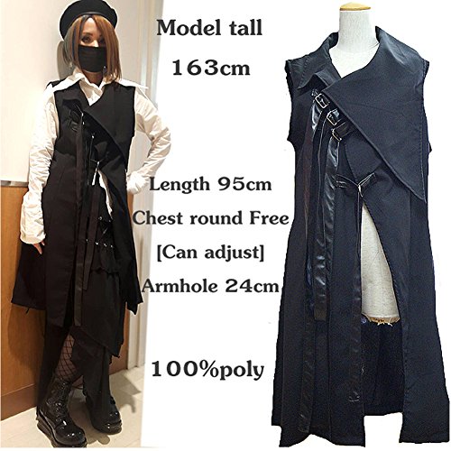 -. Feature : 【対象】 メンズ レディース 男女兼用です。 / 175cmくらいまでは着用できます / 【サイズ】 着丈: 95cm / バスト 90cm (合皮のベルトで調節 前開きタイプのため若干のサイズ幅が取れます) / 【素材】ポリエステル100% / 【特徴】左右非対称のアシンメトリースタイル シャツとの相性はよいです。ラシカルなプリンセスゴシック、執事、BOKUスタイルにも / ※モデルさん身長 162cmです。仕様により若干色が異なる場合がございます 実寸は多少の誤差が出る場合があります