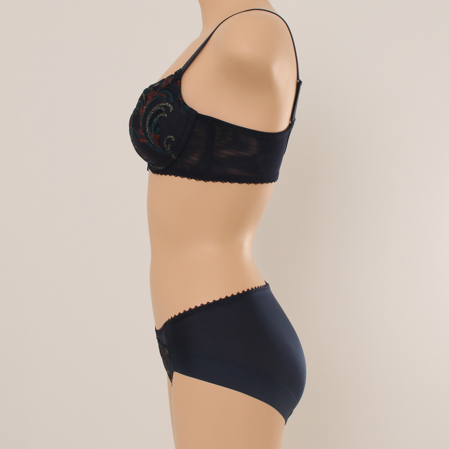 크고 화려한 무늬와 메탈사의 샤이니한 감각이 돋보이는 튤자수 패드 브라입니다.
