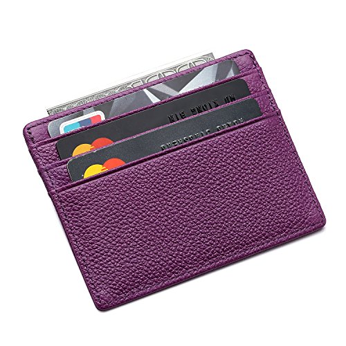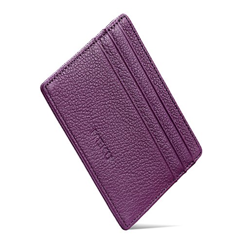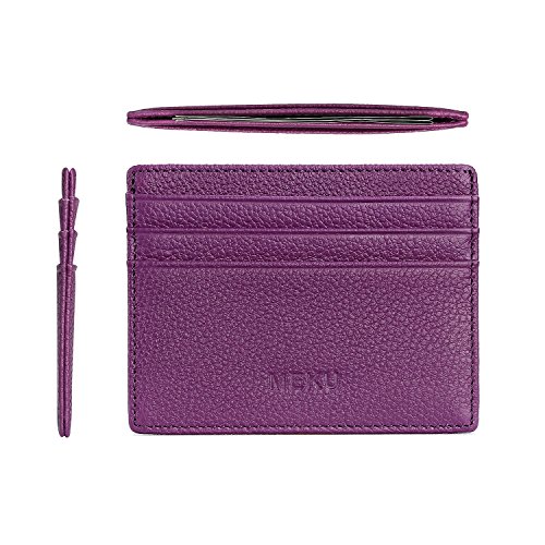 MEKU Slim Front Pocket Leather Wallet Business Credit Card Case Sleeve Minimalist Wallet Purple