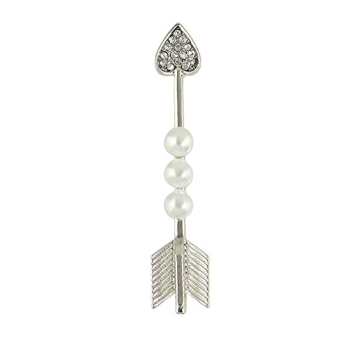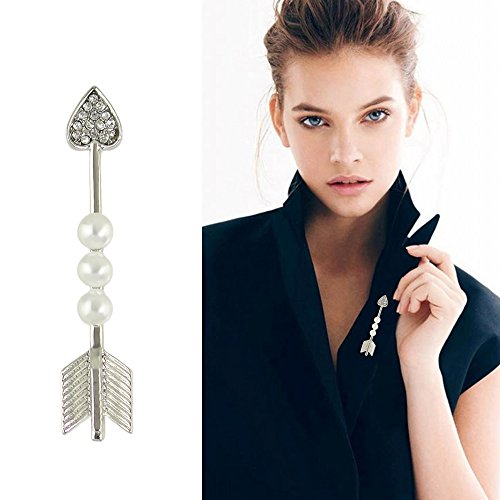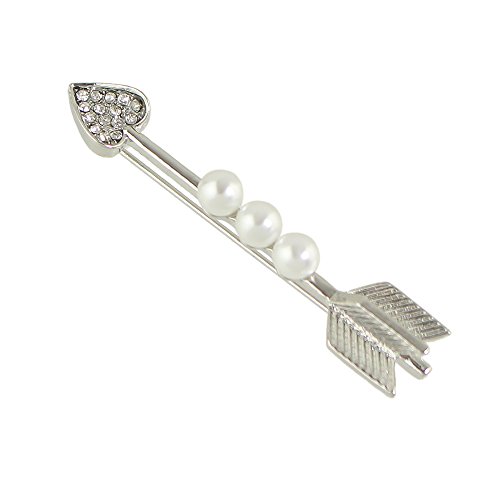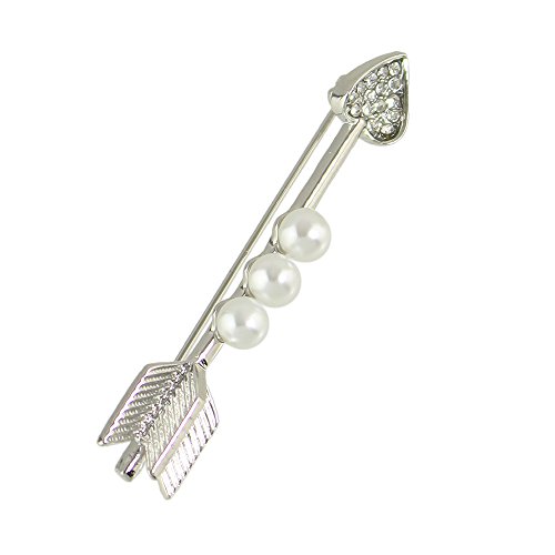 -. Title : Feelontop New Style Silver Alloy Pearl Rhinestone Heart Arrow Shape Brooches Pins with Jewelry Pouch