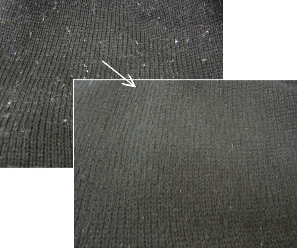 ●衣類など洗う度に増えてしまうやっかいな毛玉。サッとブラッシングするだけできれいにとれます!!