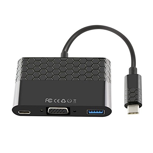 -. Feature : The compact USB Type C to VGA+USB3.0+Type-C/F Charging Adapter offers a plug-and-play solution for connecting your laptop or notebook to an external display monitor/projector/HDTV and other essential devices(mouse, USB flash disk,keyboard, etc). / 1080P Resolution. The USB C to VGA/ Type-C/F adapter supports up to 1920*1200(1080P)/60HZ video resolution with the easy connection of most monitors, projectors with VGA port. Mirror your MacBook display to the VGA-enabled TV or display in up to 1080P FHD or use as a second monitor. / Full size USB3.0 Tech. USB3.0 A/F provides you high speed transmission up to 5Gbps. Backwards compatible with USB2.0. USB3.0 port can connect a mouse, keyboard, camera, U disk, removable hard drive or other USB devices for data synchronization and charging USB devices. Support max power 5W(5V/1A). / USB PD(Power Delivery) Function. Type C/F(Female) can charge your new devices(12 inch Macbook, Google new Chromebook Pixel. No worrying about power shortage. (Type C/F do not supports data transfer, only charging) / Versatile design of USB c 3 in 1adapter aesthetically match your devices and save room. Adopted advanced ABS material, the adapter provides you rigidity, durability.