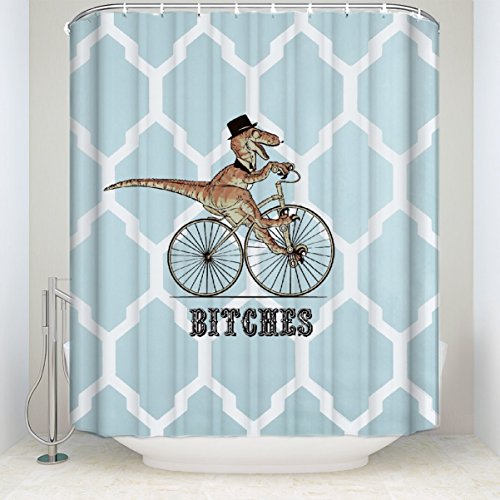 YEHO Art Gallery Fashion Design Dinosaur Bicycle Geometry Pattern Fabric Shower Curtain 36 x 72-Waterproof Bath Decor Curtain