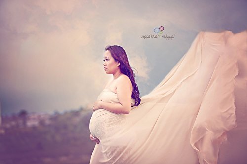 This sheer wrap makes a gorgeous photo prop for maternity shoots. It measures 4 yards (144") long and is 60" wide. It is simply 4 yards of fabric, meaning there is no sewing or hemming at all. It can be wrapped, tucked, tied, pinned, clamped or positioned any way you need for photos.One layer of fabric is sheer, but you can double the layers to make it solid and the mom more comfortable.Feature