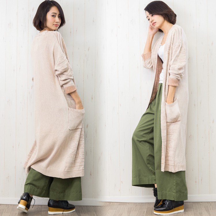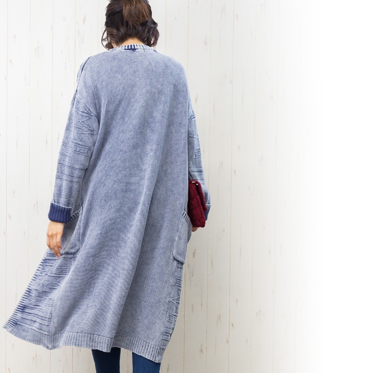 商品名:硫化染オルテガ柄ロングカーディガン