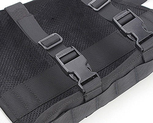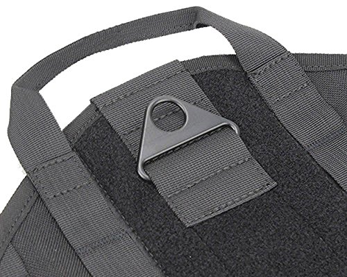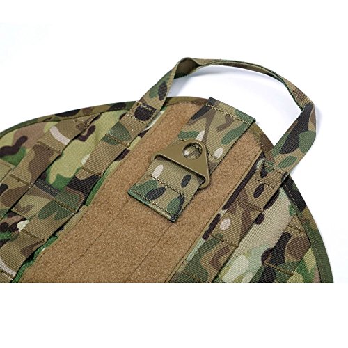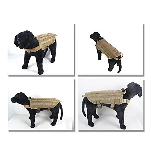 -. Feature : Compatible Molle system for adding extra pouch to put water bottle, snacks, first aid supplies / Two carry handles are attached front and rear; with two attachment points for a leash / Thorax and abdomen straps can be adjusted for wearing stability and comfort / Made of high quality Nylon, durable, clean and sturdy stitching, without loose threads or sloppy seams / 3 size available, make best choose for your pet hiking, tactical games, camping, walking, outside travel