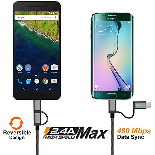 Type C Charging Cable, Segawoot 2 in 1 Micro USB Cable, Reversible Connector for Nintendo Switch and other Type C & Micro USB enabled Devices