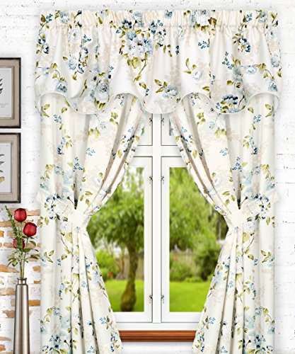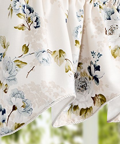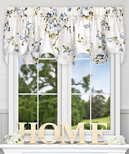 Ellis Curtain Chatsworth Traditional Floral Design (Lined Scallop Valance, 70 x 17", Blue)