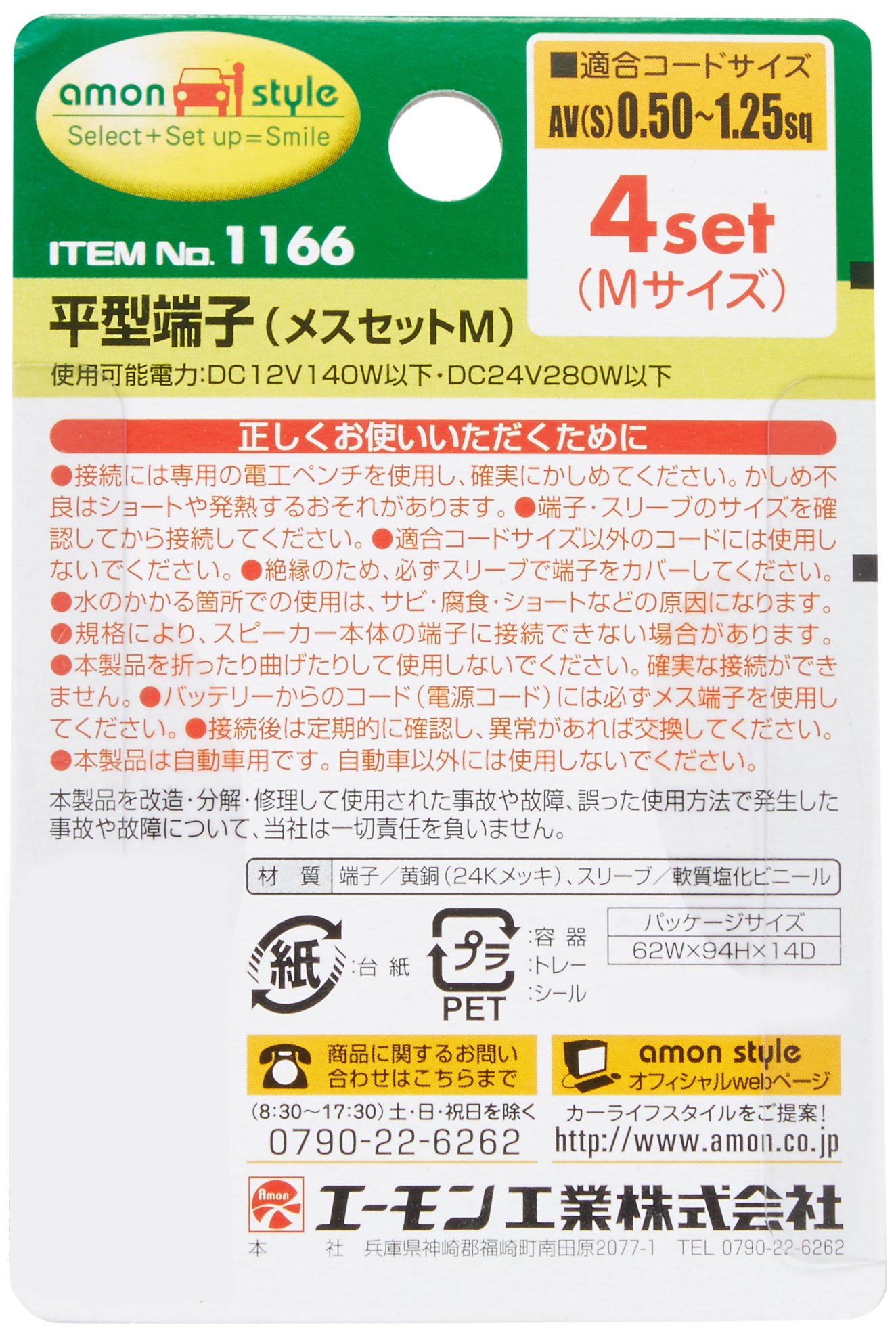 Amon 1166 flat type terminal (female set ・ M)