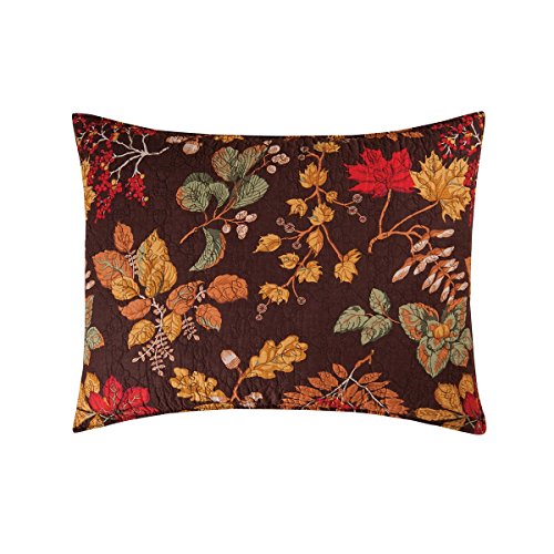 C & F Enterprises Floral Leaves Pattern Fall Autumn Colors Orange Yellow Red on Brown Quilted Sham, Amison -- Standard , 20 Inches by 26 Inches