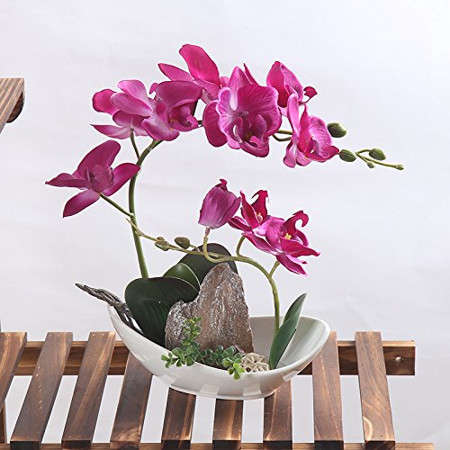 Orchid Artificial Flowers Arrangement Bonsai Miniascape Home Decoration Holiday Gift (Purple Orchid+Mountain)