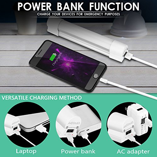【Power Bank Function】With 4400mAh Lithium battery ,you can use the camping light as a power bank to charge your devices for emergency purposes. Compared with most led lights ,it is more convenient and working long time. At the same time, you can use the computer, mobile power, socket to charge the LED