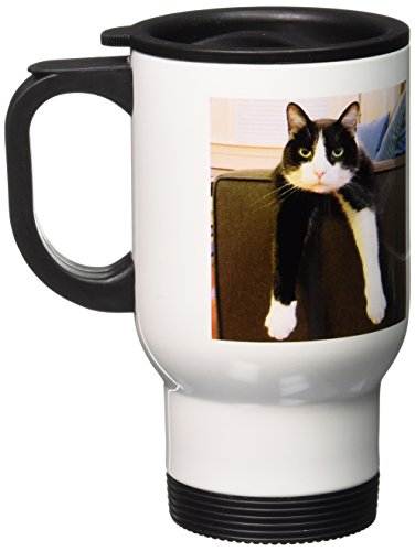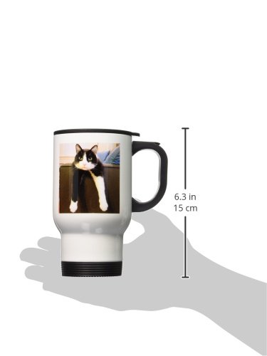 3dRose Black and White Cat with Nothing to Do Travel Mug, 14-Ounce, Stainless Steel