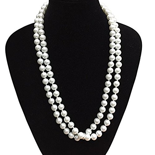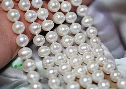 - One Size Comfortably Fits All. 100% handmade pearl necklace; Length: 55" Weight: 110 grams.