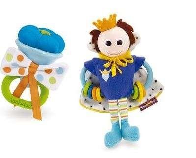Prince figure with a crinkly cloak, sliding beads, and rattle providing tactile and visual stimulation.